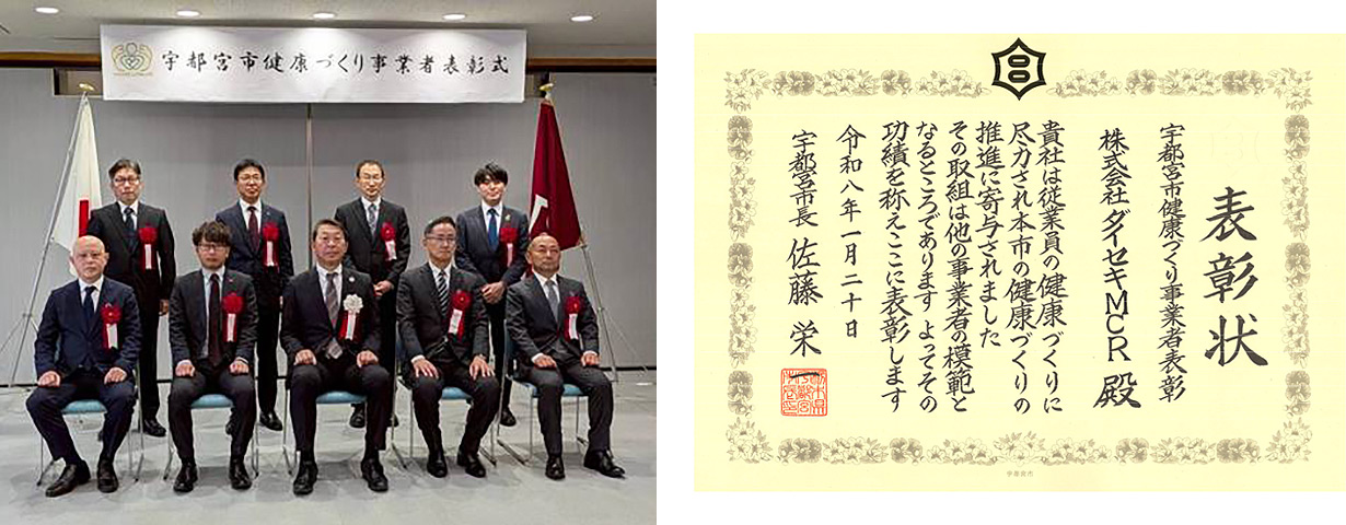 株式会社ダイセキMCRは、社員の健康づくりに尽力し宇都宮市の健康づくりの推進に寄与した企業として、「宇都宮市健康づくり事業者」の表彰を受けました。
